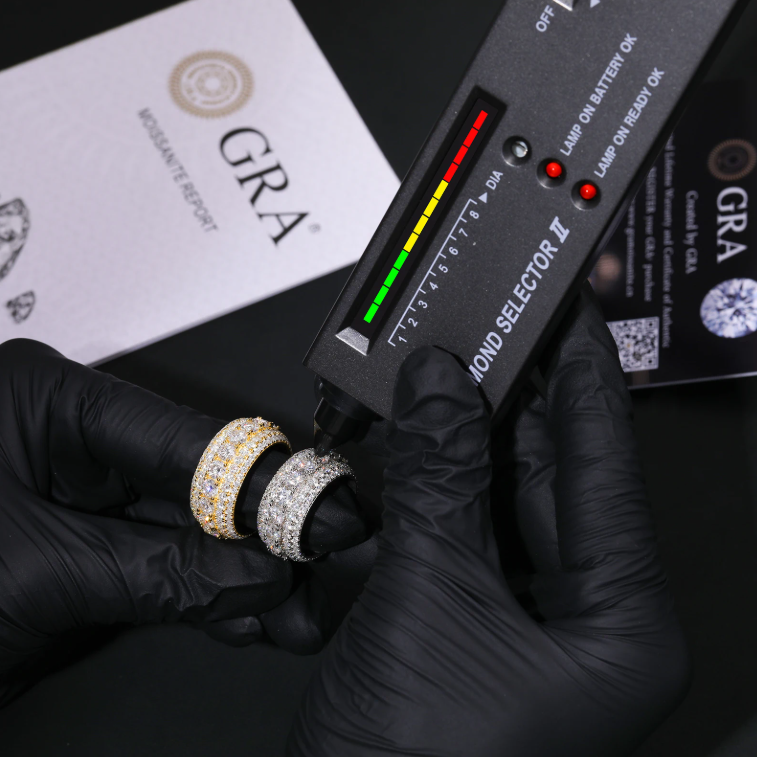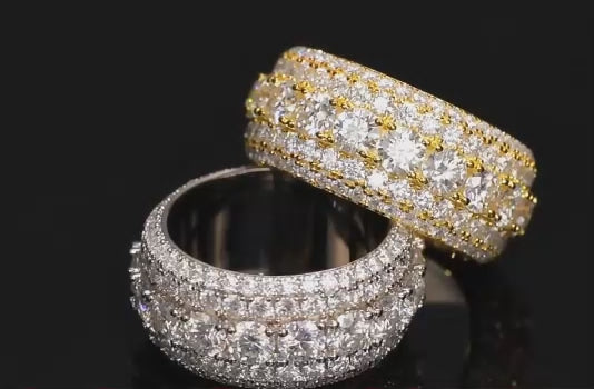 Command attention with The Monarch Five Row Moissanite Band, a bold fusion of brilliance and sophistication. Crafted from premium S925 sterling silver, this wide-band ring is plated in rich gold and encrusted with five shimmering rows of high-grade moissanite, each one catching the light with fire and clarity rivaling natural diamonds.