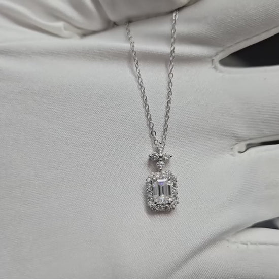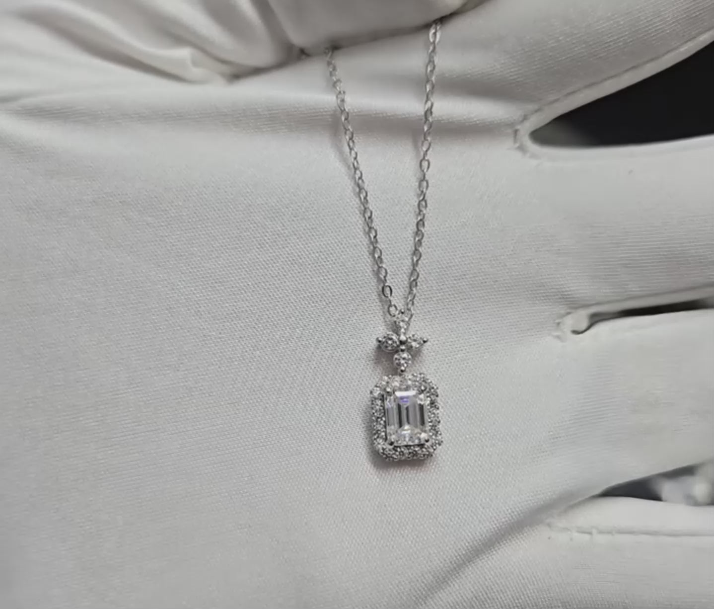Sterling silver bracelet. 1 carat moissanite pendant necklace emerald cut. Necklace length is 15.75 inches adjustable to 17.72 inches.