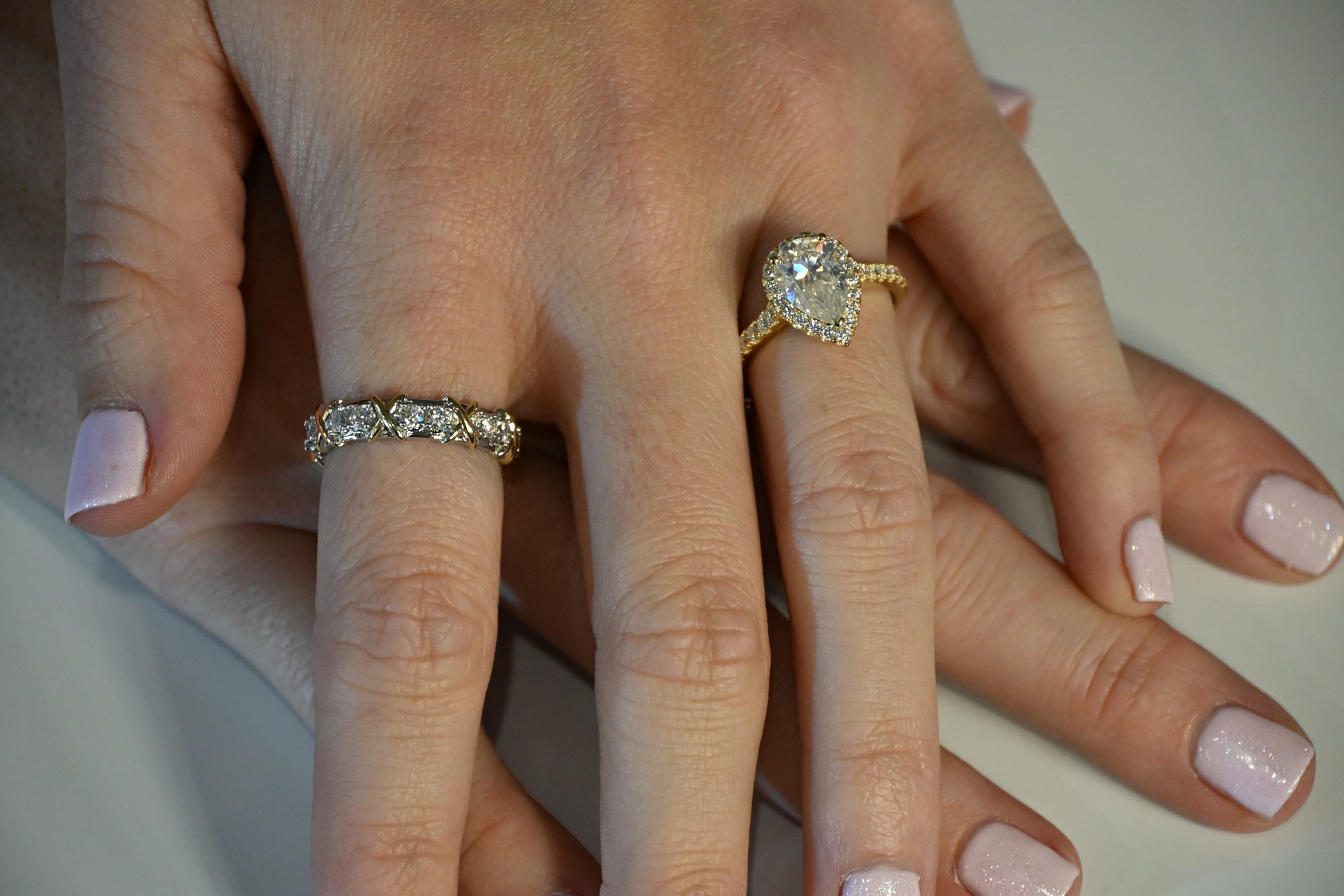 Halo and band adorned with high-quality pavé stones